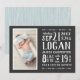 Affordable custom printed baby birth announcement photo cards. This modern rustic design features a trendy typography layout personalized with baby's birth stats and newborn photo. Reverse side features a subtle wood grain background. Use the design tools to choose any background colors, edit the text fonts and colors, add more photos and create a unique one of a kind baby birth announcement for your new baby boy.