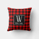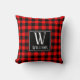 Modern Rustic Red Buffalo Plaid Checkered Monogram Throw Pillow