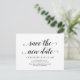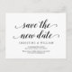 This is the modern minimal clean rustic design themed, in Black font, Wedding party invitation Rescheduled (postponed / postponement) postcard (Save the new date) . It is the perfect and elegant way to make the reschedule announcement to your friends and family.