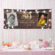 Celebrate this fabulous 50th Birthday party with a festive, rustic yet modern celebration banner designed with elegant string lights on a wood texture showcasing your name and birth year alongside 2 custom photos. Perfect as party decor or as a trendy welcome sign.