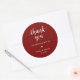 Modern Wedding rustic Thank You Gifts Classic favor Round Sticker, in clean script, little cute red heart, with bride and groom signature and wedding date, burgundy deep red wine theme.