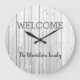 Modern rustic welcome Family name gray shiplap Large Clock