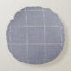 Modern Rustic Windowpane Plaid Linen Blue Round Pillow