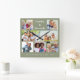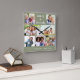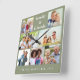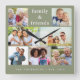 Modern Sage Green 7 Photo Collage Custom Name Square Wall Clock