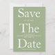 Modern and bold calligraphy save the date in sage green. Add any color to the back by clicking the button to edit the design.