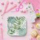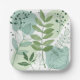 Modern Sage Green Botanical Leaf Pattern Paper Plates