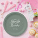 Modern Sage Green Elegant White Script Wedding Paper Plates