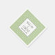 Sage green typography wedding paper napkin that features a white geometric pattern on sage green and a white frame with your text.