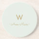 A modern, elegant monogram design with gold handwritten minimalist script typography and sans serif block typography on an elegant pale pastel Sage Green background. The monogram and name can be easily personalized.