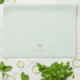 A modern, elegant monogram design with gold handwritten minimalist script typography and sans serif block typography on an elegant pale pastel Sage Green background. The monogram and name can be easily personalized.