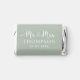 A natural and grounded miniature wedding favor showcasing "Mr and Mrs" in decorative heart script calligraphy with the couple's surname as a warm monogram centerpiece. Earthy sage green tones bring a botanical, organic quality to this romantic design. Customize the names and wedding date for a thoughtful reception favor. All text is fully editable.