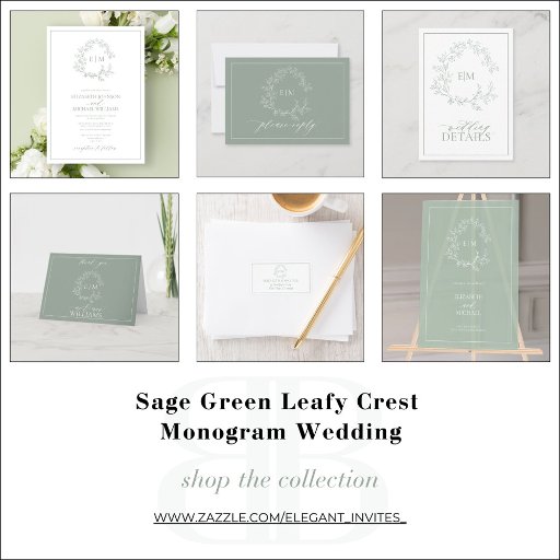 Capture the essence of your love story with this timelessly elegant wedding invitation. Featuring a beautifully designed leafy crest monogram, this modern sage green creation blends delicate natural elements with contemporary sophistication. The monogram, representing both of your initials, serves as a personal touch, symbolizing the union of two lives intertwined by love.