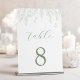 Direct your guests with a fresh touch of elegance using this custom table number design, adorned with delicate hand-drawn botanicals. The crisp white background features subtle sage green foliage gracefully cascading, offering a serene and naturally refined accent for your reception tables. This charming botanical artistry provides clear guidance with timeless, organic style.