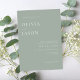 Having your Modern Sage Green Minimal Wedding Invitation match the theme of your party is a great detail that your guests will appreciate. The thoughtfulness of a consistent party theme is often appreciated and can show your guests that you can host a cohesive event.