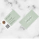 Modern minimalistic sage green, white amd black professional card design featuring a QR code and a custom photo.