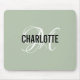 Modern sage green monogram name mouse pad