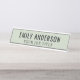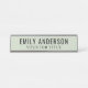 Modern light sage green and white desk name plate includes the employee's name and professional job title in stylish text. Can be fully personalized with your custom text and colors, and your choice of frame color.