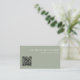 Modern styling for your business. In contemporary sage green with white text. You'll add your QR code and link it to your website. Your customers will love this easy to use link. Plus on the rerverse, we have 4 social media icons. Delete ones you don't require. Add your business contact details, and name on our social media channels. With so many touch points, your clients will love this business card.
