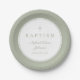 Modern Sage Green Religious Cross Baptism Paper Plates