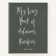 This trendy recipe book features a minimal layout with trendy sage green background, whimsical script in white for "My big book of delicious recipes" and your text or name of choice. Customize this recipe journal for you or give it as a gift for a house warming or to first home owners.