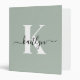 Modern Sage Green Script Monogram 3 Ring Binder