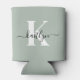 This simple, elegant sage green can cooler with your first name in a trendy script font in black and your first initial in a modern cap font in white is perfect for you. It's stylish and trendy and yet very classic. Get a bunch for when you're entertaining. Guests will be able to keep their drinks nice and cold.