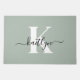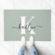 This simple, elegant sage green 30 x 45 doormat with your first name in a trendy script font in black and your first initial in a modern cap font in white is perfect for you. It's stylish and trendy and yet very classic. It will look fabulous at all your doors.