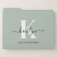 These simple, elegant sage green set of 3 pocket folders with your first name in a trendy script font in black, your first initial in a modern cap font in white, and your name in CAPS in white are perfect for keeping yourself organized. They're stylish and trendy and yet very classic.