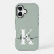 This simple, elegant sage green iPhone 16 Case with your first name in a trendy script font in black and your first initial in a modern cap font in white would look fabulous on your cell phone and will keep it protected from breakage. It's stylish and trendy and yet very classic.