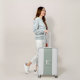 This simple, elegant white hard-sided suitcase with your first name in a trendy script font in black, your first initial in a modern cap font in white, and your full name in CAPS in black is perfect for you. It's stylish and trendy and yet very classic. It will be super easy to spot on the baggage carousel.