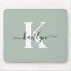 Modern Sage Green Script Monogram Mouse Pad