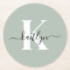 These simple, elegant sage green round paper coasters with your first name in a trendy script font in black and your first initial in a modern cap font in white are perfect for keeping your tables and counters free from water rings. They absorb droplets so you don't have to worry when your entertaining or enjoying a drink. They're stylish and trendy and yet very classic.
