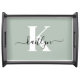 This simple, elegant sage green serving tray with your first name in a trendy script font in black and your first initial in a modern cap font in white is perfect for you. It's stylish and trendy and yet very classic. It's unique - like you! Would be fabulous for when you're entertaining or bringing drinks and food to a table on movie night!