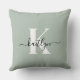 This simple, elegant sage green 20 inch throw pillow with your first name in a trendy script font in black and your first initial in a modern cap font in white is perfect for you. It's stylish and trendy and yet very classic. It will look fabulous in your bedroom, living room, viewing room, she shed.