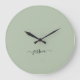 Modern clock with a sage green background and a hand lettered black girly script name. Personalize with your name