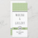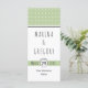 Modern sage green typography wedding menu card that features a white geometric pattern on sage and a banner with your wedding date.