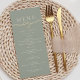 Stylish sage green wedding menu featuring a minimalist layout with an elegant gold rope heart design. Easily customizable with your own courses, names, and wedding date. A refined touch to your wedding reception table that pairs perfectly with romantic, boho, or modern themes.