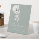 Modern Sage Green and White Orchids Floral Wedding Table Sign - Elegant Monochrome Botanical Design. Elevate your wedding celebration with our modern sage green and white wedding table sign featuring the timeless allure of white orchids. The minimalist design captures the elegance of these blooms, creating a sophisticated botanical masterpiece. With the addition of white script, these wedding signs exude a sense of refined beauty that perfectly complements the modern aesthetic. Share the beauty of your love story with family and friends through these elegant and captivating wedding table signs.