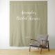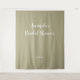A modern sage green backdrop tapestry for a Bridal Shower. Customize it with your own text. Perfect as a welcome sign or photo booth backdrop.