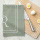 Modern Sage Green & White Stripe Monogram Personalised kitchen towel