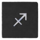 A silver chrome like Sagittarius zodiac symbol on a black snake skin style texture print background. A modern urban racy design for a great custom birthday gift idea.
