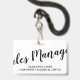 A simple stylish modern sales manager ID badge featuring a script typography title and your name and company name or region. Simple, modern, stylish. For management staff for meetings, events, and conventions.