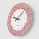Elegant modern pastel salmon pink glitter texture print with white face and pink numbers.