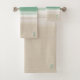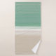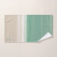 A modern watercolor ocean scene with turquoise sea and sandy beach bath towel set with space for your initials.
