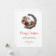 Modern Santa Claus Pine Wreath Christmas Greeting Holiday Card