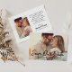 A fresh and contemporary two-sided save the date featuring bold black brush script overlaid on a full-bleed landscape engagement photo, with a clean split back panel showing a second photo alongside a warm, personal wedding announcement message. The casual script style paired with the heartfelt back panel wording creates a save the date that feels both modern and personal. All text and photos are fully customizable.