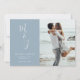 Announce your wedding day with your awesome photo against a powder blue background along with your initials in a whimsical modern calligraphy script. Ideal Save The Date for weddings, engagements, anniversaries, and other special events.