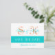Modern Save the Date Teal Orange Double Monogram Announcement Postcard