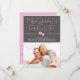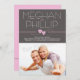 Modern look save the date with photo and two pink hearts text design over grey. Customize text and photo as needed to announce your upcoming wedding.