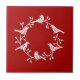 Modern Scandinavian Bird and Rosehip Wreath Ceramic Tile